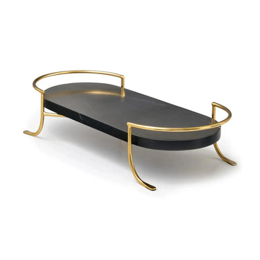 Oval Marble Tray on Gold Metal Stand